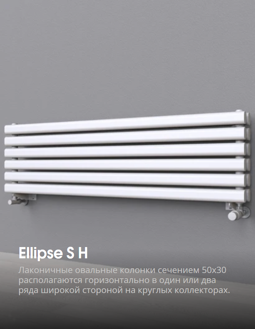 Новая серия дизайн радиаторов Ellipse — это сочетание брутальности с мягкими линиями, воплощенное в стальных трубчатых радиаторах с овальными колонками. Элегантный характер серии подчеркивают две модели: Ellipse P и Ellipse S, каждая из которых доступна в вертикальном и горизонтальном исполнении и предлагает уникальные варианты по ширине колонок и количеству рядов.